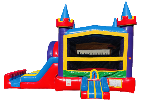 Rent this very nice mulitcolor combo for your next event. It has a large jumping area, basketball hoop, and mini slide on the side for kids to enjoy.